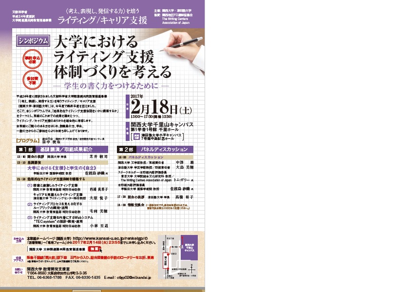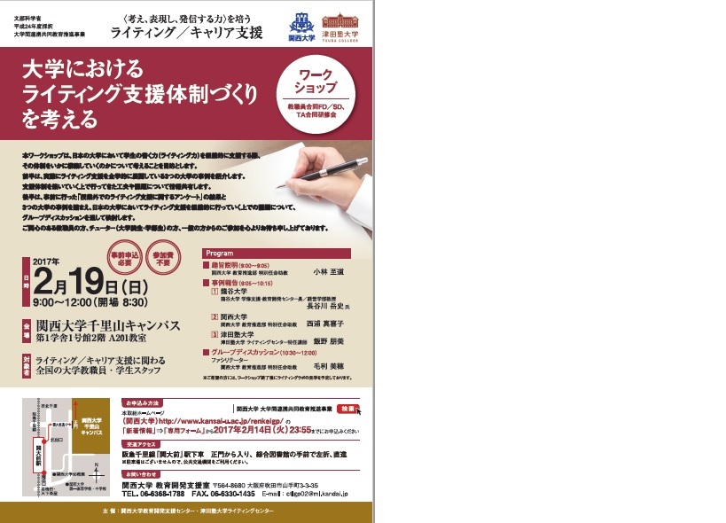 関西大学・津田塾大学主催シンポジウム「大学におけるライティング支援体制づくりを考える 」開催のお知らせ