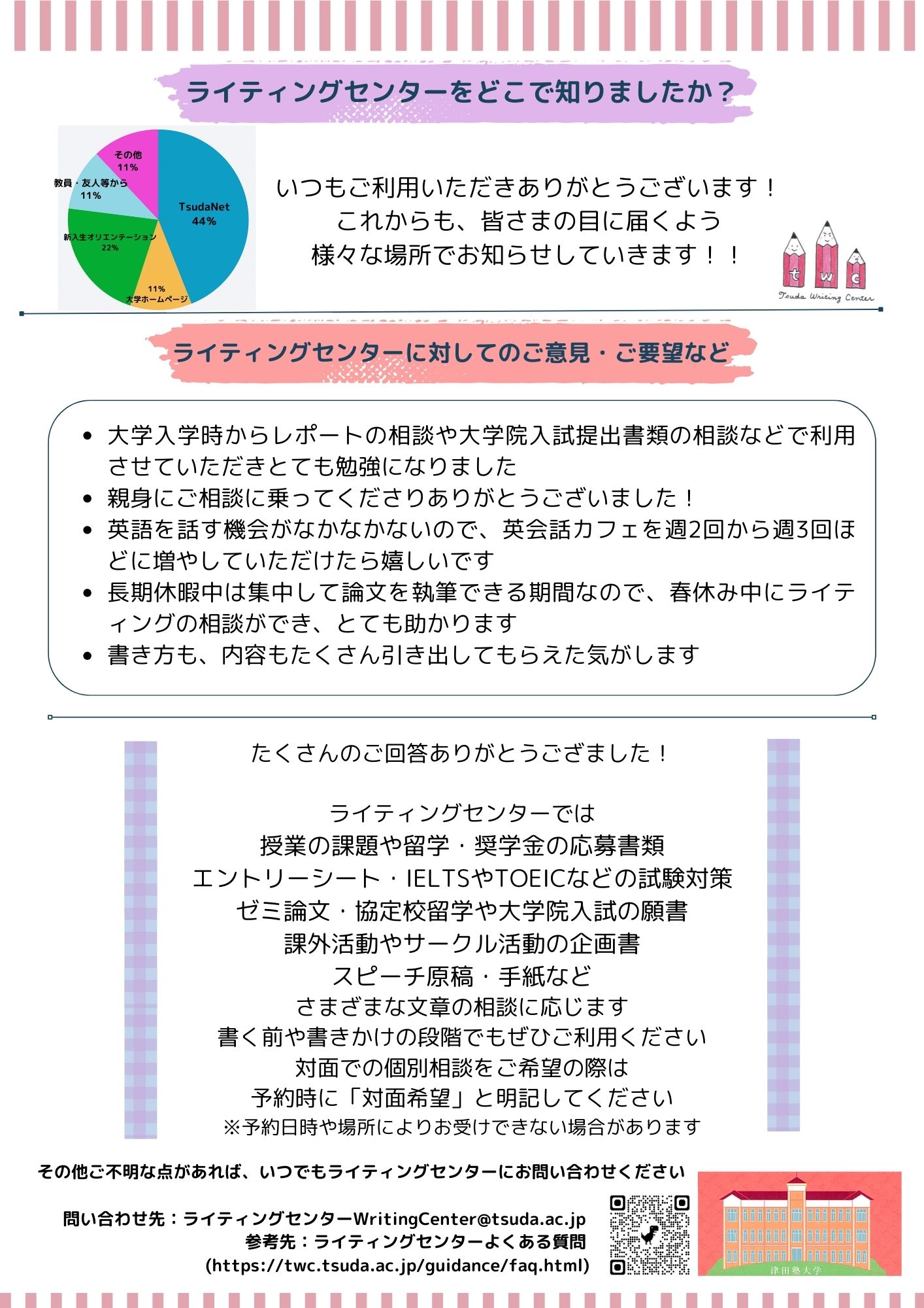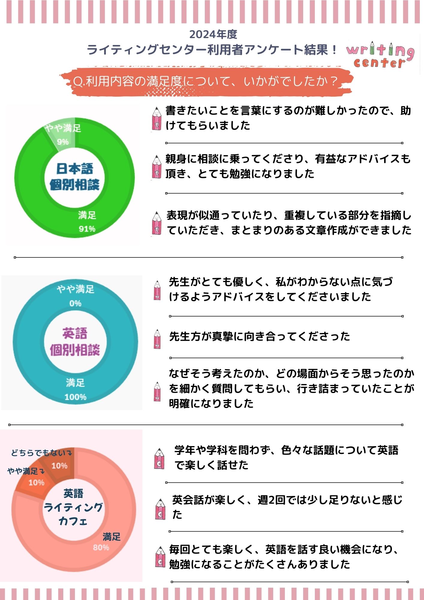 2024年度ライティングセンターを利用されたみなさんに、アンケートを実施しました